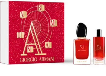 Du behöver inte längre säga adjö till din favoritdoft även på resande fot. Parfymsetet för dam Armani Sì Passione innehåller parfymernas originalflakong samt dess miniatyr som du kan enkelt packa in i resväskan.